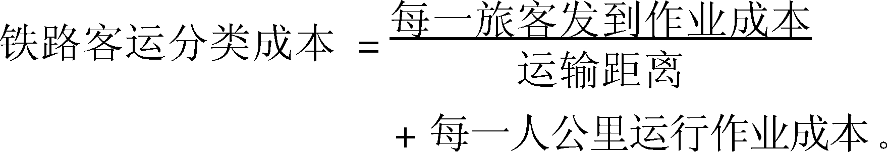 不同客車和旅客列車的旅客人公里運輸成本。鐵路制定和調(diào)整旅客運價的重要依據(jù)?瓦\有硬座車、軟座車、硬臥車、軟臥車、簡易客車、棚車代用等區(qū)別;旅客列車有特快、直快、普客、市郊等區(qū)別;各種類型客車的載客人數(shù)、車身自重、維修、折舊費用都不相同;不同旅客列車的重量、速度、服務(wù)項目的服務(wù)人員數(shù)量等均有差別,從而影響著有關(guān)的支出。其計算方法是將客運支出劃分為始發(fā)到達作業(yè)費和運行作業(yè)費兩部分,據(jù)此分別求出每一名旅客發(fā)到作業(yè)成本和每一人公里運行作業(yè)成本,再按下列公式計算各種客車與旅客列車別在不同運輸距離的旅客人公里運輸成本: