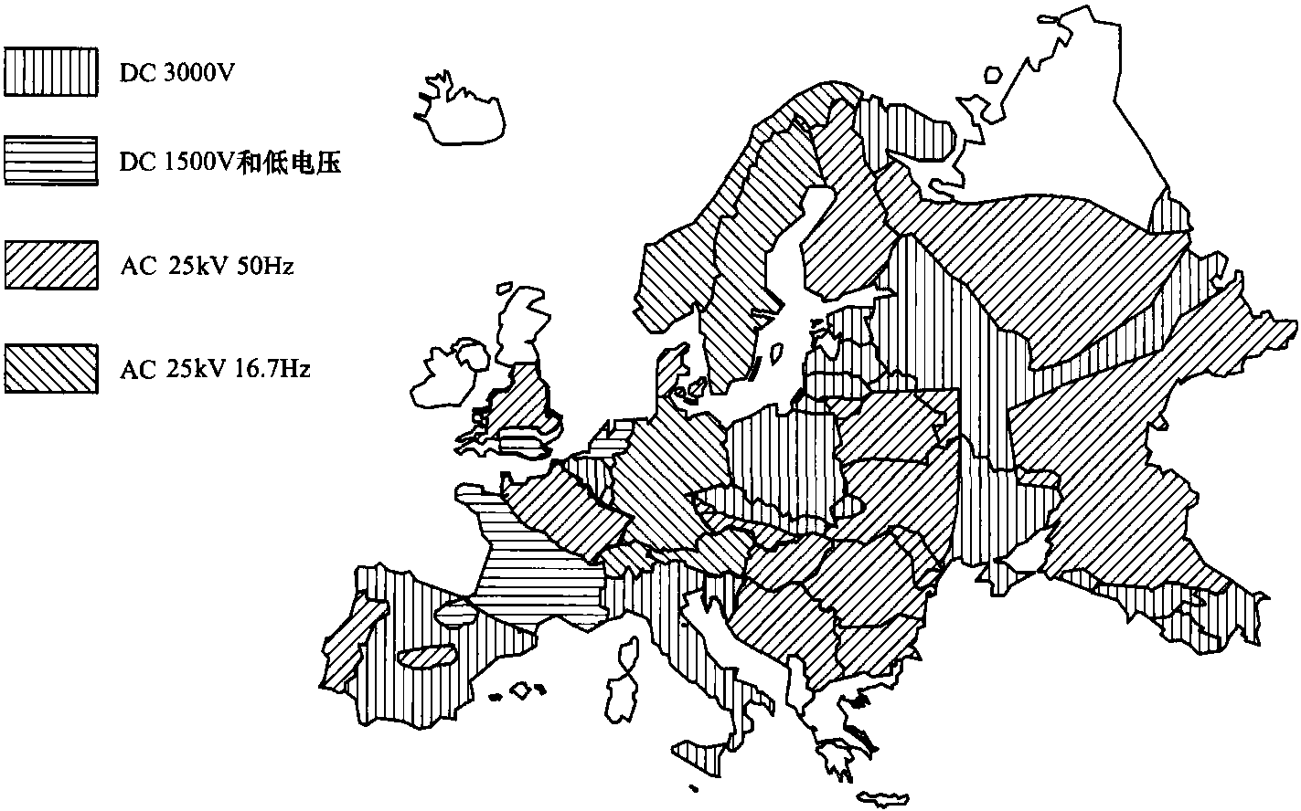 圖1.1所示為歐洲干線鐵路所使用的牽引電流系統(tǒng)。