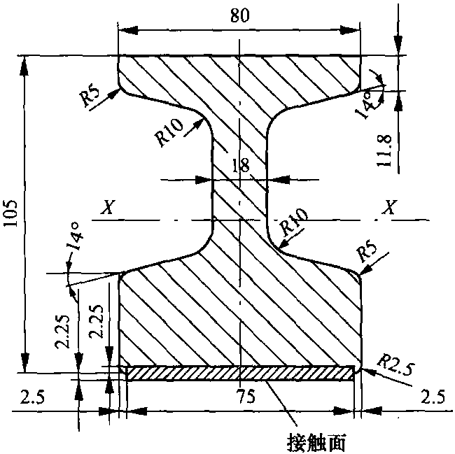 用于電氣化鐵道的鋁復合接觸軌具有與鋼接觸軌相同的截面形狀,但截面積為2100mm2的空心鋁軌經(jīng)過連續(xù)擠壓處理,5100mm2軌為軋壓實心剖面。復合接觸軌的接觸面為不銹鋼,抗拉強度不小于500N/mm2[3.10]。鋼鋁擠壓復合接觸軌為鋼鋁粘結,其強度與焊接一樣。不銹鋼接觸面具有較高的抗磨能力,從而延長了使用壽命。圖3.24為鋼鋁復合接觸軌的截面。