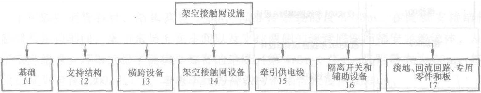 架空接觸網(wǎng)設施可分為7個主功能組,它們又由若干個子功能組構成 (圖4.74)。