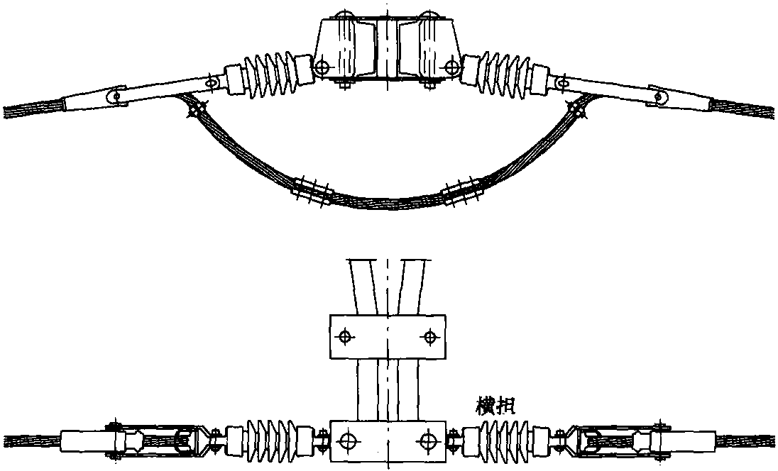 當(dāng)采用懸式絕緣子時,TPL線固定連接在橫擔(dān)上。如圖4.45所示,耐張絕緣子將牽引供電線區(qū)段終結(jié)。牽引供電線的起點和終端都是硬錨固定,使用鋁導(dǎo)線或ASCR (鋼芯鋁絞線) 及合適的金具、根據(jù)架空供電線路的原則進行架設(shè) [4.13]。如果牽引供電線與其他線或結(jié)構(gòu)件相互妨礙,則必須埋置地下電纜將其更換,此時用電纜端套密封件來實現(xiàn)從牽引供電架空線到電纜的過渡。采用電涌放電器來防止電纜的不正常過電壓。在電纜管中敷設(shè)電纜時必須遵守有關(guān)電負荷和其他電纜的兼容性及允許彎曲半徑等相應(yīng)標(biāo)準(zhǔn)。