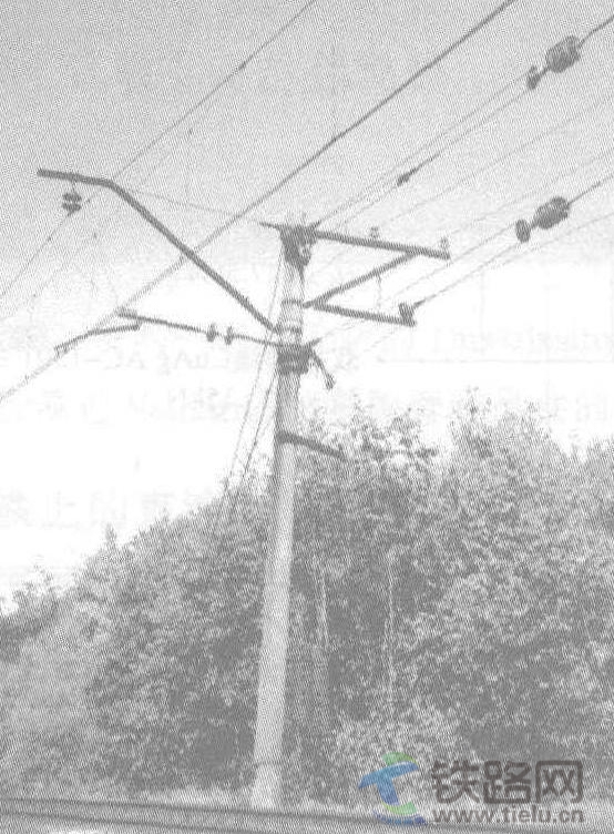 十月鐵路公司(OEB) 負(fù)責(zé)運營莫斯科—圣彼得堡線路,其電壓為3kV,時速最大為200km。這條線路是俄羅斯使用最多的鐵路線之一。圖4.91的左圖為改建前的腕臂布置圖。懸式絕緣子把承力索連接到由角鋼組成的腕臂上,兩只定位器以40mm的間隔引導(dǎo)接觸線。架空接觸網(wǎng)是為達到250km/h的最大速度而改建的,圖4.91的右圖是由西門子公司安裝的兩個接觸網(wǎng)區(qū)段的一種支持裝置,作為改建的一種選擇方案。該區(qū)段的質(zhì)量在運營期間已得到證明。區(qū)間腕臂主要裝在混凝土支柱上,支柱也架設(shè)電話線和信號線;