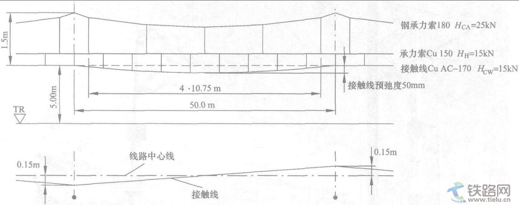 圖4.114 日本東海道高速鐵路線上的架空接觸網(wǎng)的設(shè)計(jì)