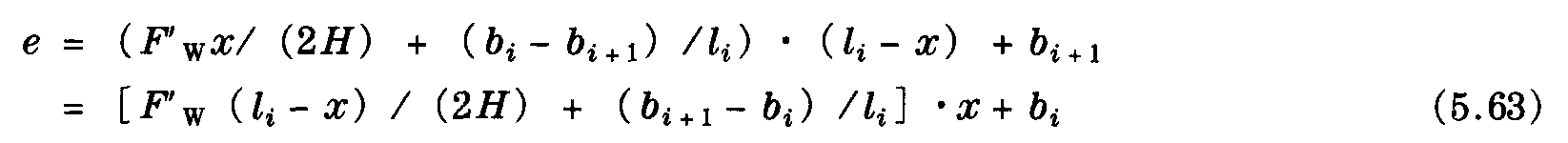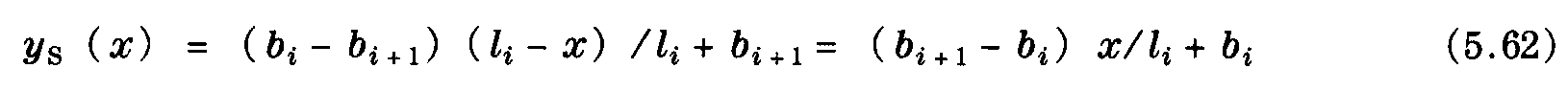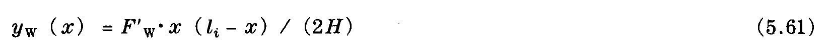 從表5.7中查出空氣動力阻力系數(shù)cw。與式 (5.34) 類似,單線的風(fēng)偏移,例如電車型接觸網(wǎng)設(shè)施中的接觸線,在基準(zhǔn)支撐右側(cè)點(diǎn)x處 (如圖5.11) 的情況可用下式表示