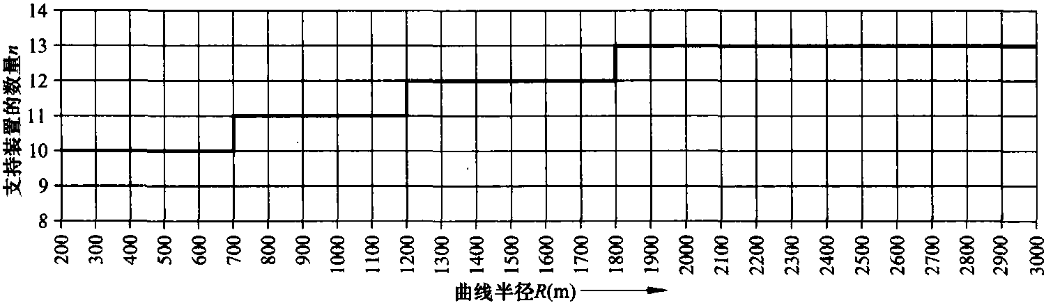圖6.14 架空接觸網(wǎng)系統(tǒng)Re200的半個錨段長度的支持裝置數(shù)量n與線路曲線半徑R之間的關(guān)系