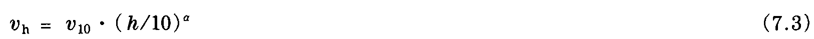 就這些地形類型而言,指數(shù)α可分別取0.12、0.16、0.22和0.28,見[7.1]。式(7.3)采用的風(fēng)速值是在10min或1h周期內(nèi)求出的平均值。請(qǐng)查閱[7.2],以便按地區(qū)確定風(fēng)速的設(shè)計(jì)值。