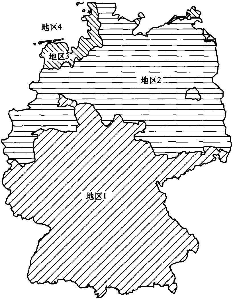 圖7.1 根據(jù)標(biāo)準(zhǔn)ENV1991-2-4繪制的德國(guó)風(fēng)區(qū)圖