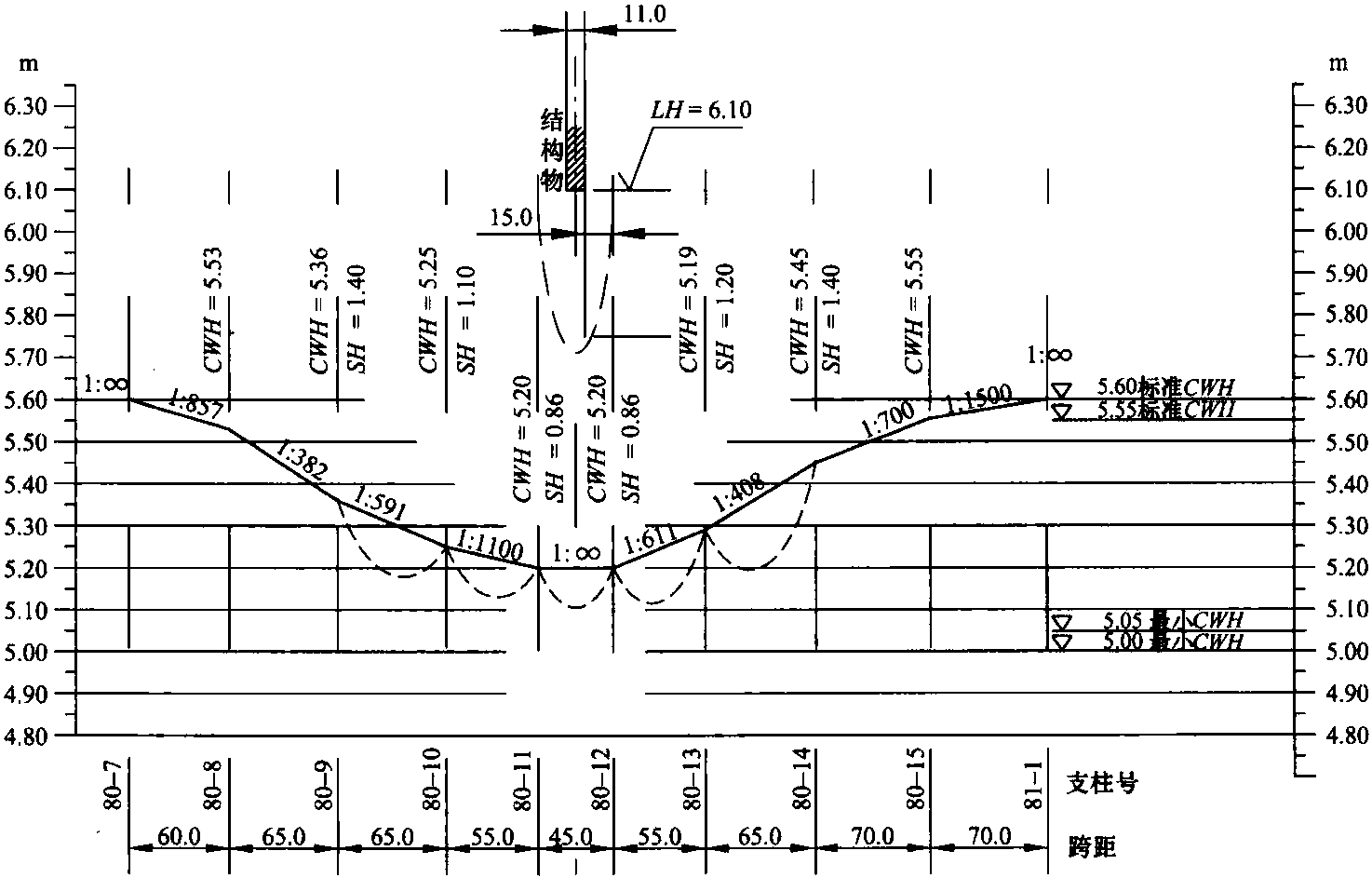 | 吊弦長度尺寸 | lHy1 | lH1 | lH2 | lH3 | lH4 | lH5 | lH6 | lHy2 | lHy1 |