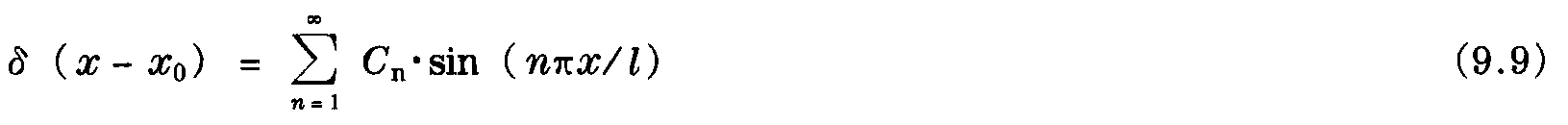 在式(9.7) 中,δ(x-x0) 是一個(gè)具有δ (0) = 1和δ (x≠0) =0特性迪拉克(Dirac)三角函數(shù)。應(yīng)用已知的邊界條件,三角函數(shù)可以轉(zhuǎn)換成傅立葉級(jí)數(shù)