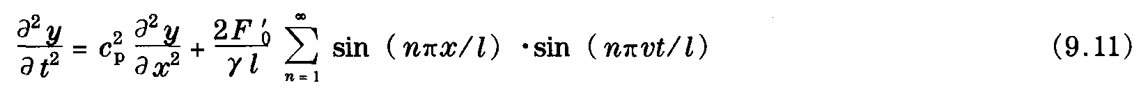 為描述當(dāng)接觸線在受電弓以恒力F′0作用于接觸線上并按照一定速度v (圖9.2) 沿接觸線運(yùn)行時(shí)的接觸線特性,可以把微分方程式 (9.4) 表示為