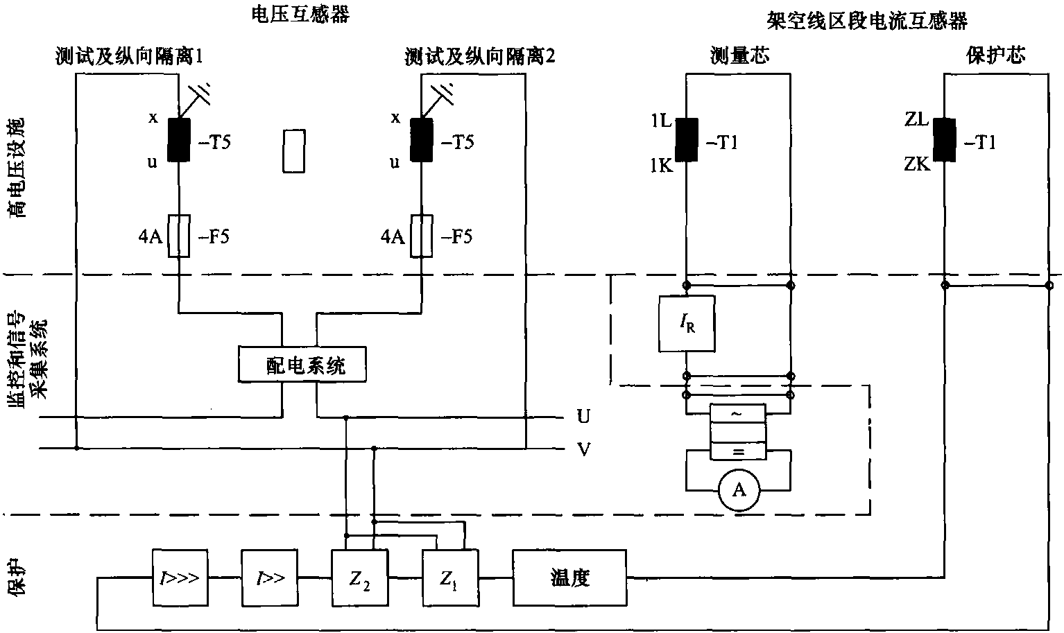 圖11.40 架空接觸網(wǎng)保護與電壓、電流互感器的連接