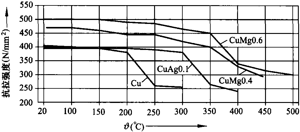 在銅中的合金添加物導(dǎo)致同型晶狀體結(jié)構(gòu)的形成,它比純銅具有較高的抗拉強(qiáng)度和耐熱性。添加銀不會(huì)影響電傳導(dǎo)性,因?yàn)殂~和銀具有類似的性能。與此相反,銅鎂合金的導(dǎo)電性低于純銅,但此類合金具有較高的抗拉強(qiáng)度。