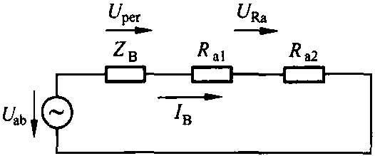 如果作用于赤裸的手足,可接近電壓才可能等于允許接觸電壓Uper(也就是說Uab/UTE=1)。實(shí)際上,無論如何,當(dāng)帶有較高電位的部件被接觸時(shí)形成的回路都包含附加電阻,如圖12.3所示。