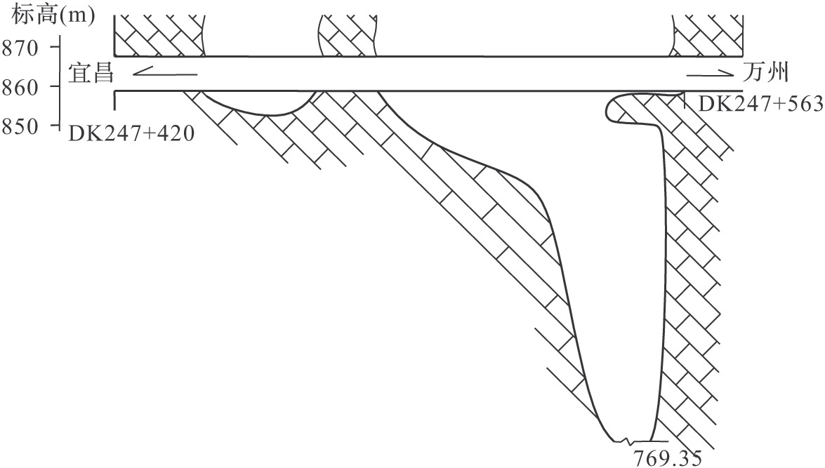 圖2-43云霧山隧道出口段溶腔剖面示意圖