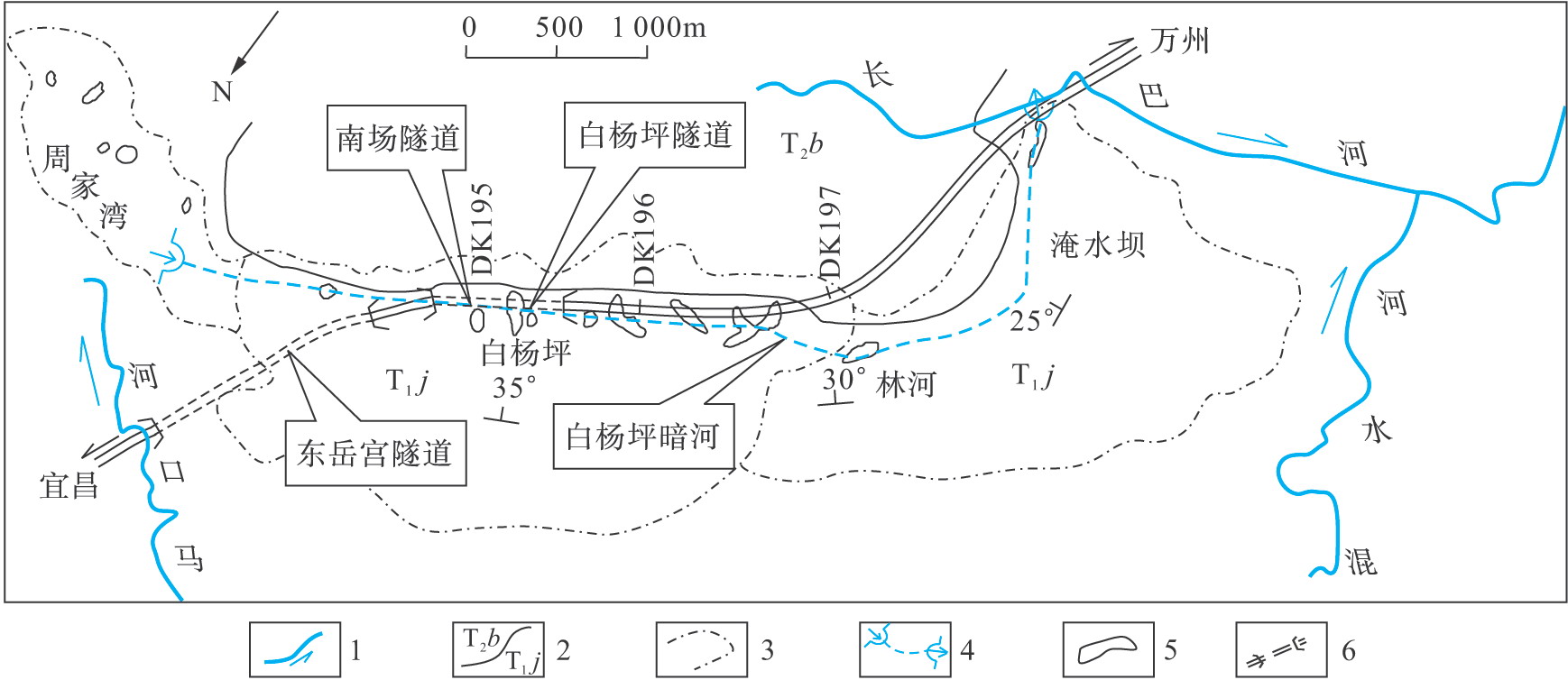 宜萬線工程區(qū)產(chǎn)出的河谷(槽谷)型暗河主要有白楊坪暗河、白果壩暗河、油竹暗河、小溪暗河、德勝場暗河等。