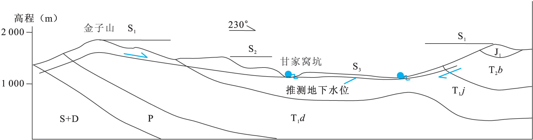 該區(qū)東側(cè)分布NE向云霧山、石板嶺山峰(S1剝夷面),西側(cè)分布NE向金子山山地(S1剝夷面),呈縱向延綿,于南、北兩端的花椒坪地區(qū)、木貢地區(qū)收斂合圍,被山勢(shì)合圍的中間構(gòu)成“船形”槽谷,清江于北部收斂端橫向穿越,成為該區(qū)的排泄基準(zhǔn)面。