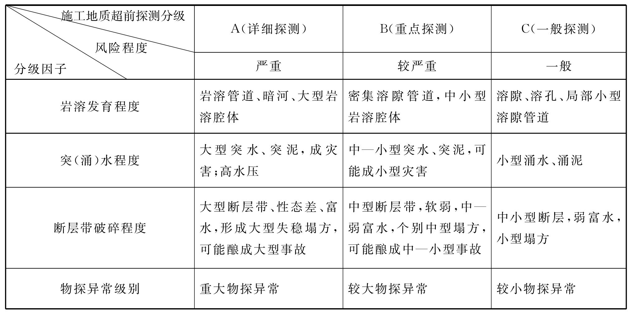 表6-5 宜萬鐵路隧道工程施工地質(zhì)超前探測(cè)分級(jí)表