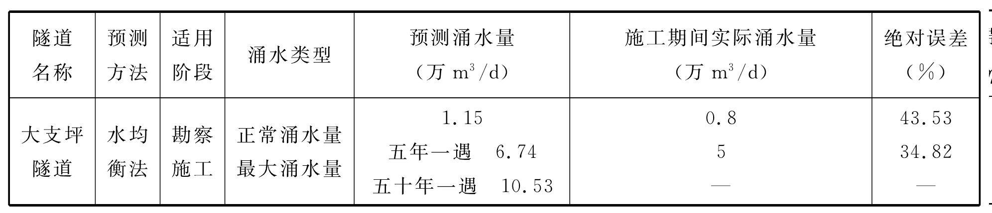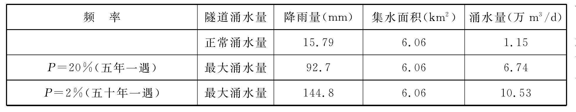 表7-5PDK132+990巖溶段涌水量預(yù)測成果