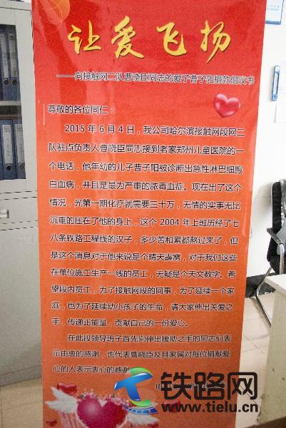 一張題為“讓愛飛揚”的愛心捐款倡議書傳到了中鐵電氣化局沈陽公司變電房建分部的每個部室和作業(yè)隊,員工們閱讀后,吃驚,痛心,同情,心里五味雜陳。