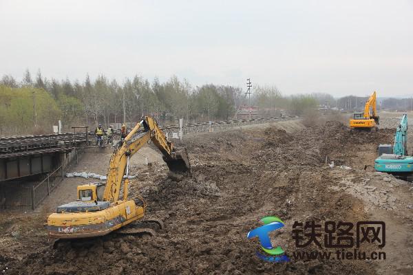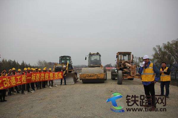 該項目部承建的哈牡鐵路電氣化改造工程一標段全長150多公里,在建的立交橋、框架涵等構(gòu)造物28處,防洪形勢嚴峻。為了強化一線職工抗洪搶險的緊迫感和應(yīng)對汛期突發(fā)事件的能力,在中原監(jiān)理公司的見證下,應(yīng)急演練模擬在建的濱綏鐵路K42阿什河中橋受連續(xù)強降雨侵襲,河水漫堤,現(xiàn)場安全受到威脅。演練中,38名搶險隊員疾步進入現(xiàn)場,搶險救援、治安保衛(wèi)、醫(yī)療救護、后勤保障等小組成員按照分工各負其責,現(xiàn)場周圍拉起了警戒線,設(shè)置了醒目的警示標志。伴隨著轟鳴的機械聲,三臺挖掘機開始清理河道,兩臺潛水泵不間斷抽水作業(yè)。搶險人員有的緊急灌裝砂袋,有的扛起幾十斤重砂袋急馳趕往60米外的水毀地段,壘壩筑堤、加固圍堰,并覆蓋塑料布防止洪水沖涮,現(xiàn)場一派緊張忙碌。經(jīng)過50多分鐘的決戰(zhàn),“險情”解除現(xiàn)場恢復了平靜,演練圓滿結(jié)束。