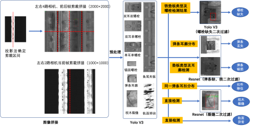 常見的軌道表面?zhèn)z測一般是,先利用工務巡檢車上的成像裝置對軌道進行高清成像,再采用人工的方式進行檢查,但這種方式存在效率低、滯后性強等問題。而基于飛槳的“軌道在線智能巡檢系統(tǒng)”安裝在綜合檢測車底,在檢測車行駛過程中,對軌道表面及其緊固件進行掃描成像,同時利用邊緣嵌入式GPU設備,實時檢測軌道表面及其緊固件缺陷。檢測結(jié)果通過車內(nèi)展示系統(tǒng)呈現(xiàn),并由分析人員最終確認缺陷結(jié)果,形成缺陷報表。