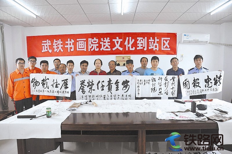 “這幅字,還有這幅畫,掛在工區(qū)絕對(duì)漂亮!5月24日下午,在武漢鐵路局京廣高鐵橫店東站區(qū)文化活動(dòng)室里,數(shù)名書畫家當(dāng)場(chǎng)揮毫潑墨進(jìn)行創(chuàng)作,并將作品全部送給了站區(qū)職工。這是武漢局工會(huì)近日開展 “送文化”到沿線站區(qū)的一幕。從去年開始,該局工會(huì)組織武漢鐵道書畫院的書畫家們走進(jìn)站區(qū),現(xiàn)場(chǎng)創(chuàng)作,將一幅幅飽含正能量的作品贈(zèng)送給一線職工。 周明 攝