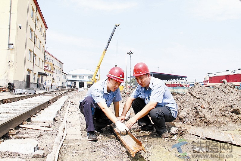 近日,三棵樹機(jī)務(wù)段整備場(chǎng)在升級(jí)改造施工時(shí),在地下接近兩米處發(fā)現(xiàn)了鋪設(shè)著石砟、木枕的 “三股鐵道”。三根鋼軌平行間距均為75厘米,其方向與該段內(nèi)的現(xiàn)有南北線路呈十字形交叉,為東西走向。