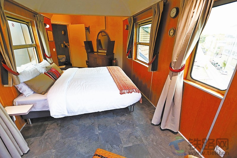 圖②為火車套房?jī)?nèi)景。火車套房位于旅館的頂樓,由火車車廂直接改造而成。圖③為火車主題旅館的火車套房外景。龔兵攝