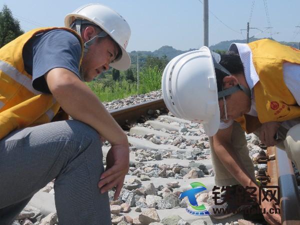 這是我第一次接觸大型項目,在感嘆蘭渝線施工“工期緊、任務重、難度大”的同時,也見證了千千萬萬蘭渝人的熱血與辛勤。記得第一次跟隨領導下現(xiàn)場,在DK826+200直放站圍墻里,十幾名施工隊員正忙活的熱火朝天。他們正在開挖通信鐵塔基坑,一臺電鉆幾個小桶。桶的顏色早已被泥土的黃色所覆蓋,邊緣偶爾露出的黃白色,正向我宣誓著它們本來面目。幾名工人在不停地往地面運土塊,黝黑的皮膚上大汗淋漓。看著我拿著相機給他們照相,用那雙滿是皺紋卻又明亮的雙眼看著我說:“姑娘,你小心哦。這里臟得很,快到外面去”。這么一句親切樸實的關(guān)懷讓我不知所措,抬著頭對他們傻笑。這時一連串的“踢踏”聲由遠而近,我見到了兩匹棕色的馬,“咴咴”喘著粗氣,馱著砂石走向墻外的砂石堆。負責人向我介紹外面的砂石和施工工具全是它們從山下一遍遍馱上來的。山路不通,材料車無法到達施工現(xiàn)場,只有靠它們。我感到新奇,跟著走下山坡,看著他們在一條羊腸小道上來來回回。作為一個南方人,第一次這么近距離接觸這種動物,打破了我對它們的想象,它們不只是楊師道《詠馬》中“追風猶可到天涯”的自由奔馳,瞬可達邊。在南充西既有線信號系統(tǒng)軟件倒替施工時,凌晨01:30—05:30的天窗點。在黑夜的籠罩下,南充西站房燈火通明,站臺上站滿了人,有站堆的,有來回奔走的,有打著電話的,好一派熱鬧景象,都將這黑夜的寂靜、寒冷統(tǒng)統(tǒng)驅(qū)散了。在天窗點到來后,站臺前一組訂軌道線路引接線的施工人員,戴著頭燈,弓著背,相互配合進行訂裝。身旁的對講機一直播放著各組人員的進展情況和行車避讓情況。在站臺上,看著他們忙碌是身影,一道燈光打過,額頭上滿是汗水,無聲地滴落在冰冷的土地;身上散發(fā)著陣陣熱氣,也立馬就被黑夜的冷風吹散,無聲又無息。聽著他們拉電纜發(fā)出“嘿咻、嘿咻......”的號子聲,配合著敲定鋼軌的“咚、咚......”聲,默默地沉寂在那漫漫黑夜,伴隨著順利開通的煙花轉(zhuǎn)瞬即逝,消失在那勝利的笑容里。在施工過程中,這樣的事情比比皆是,千言萬語也無法訴說。