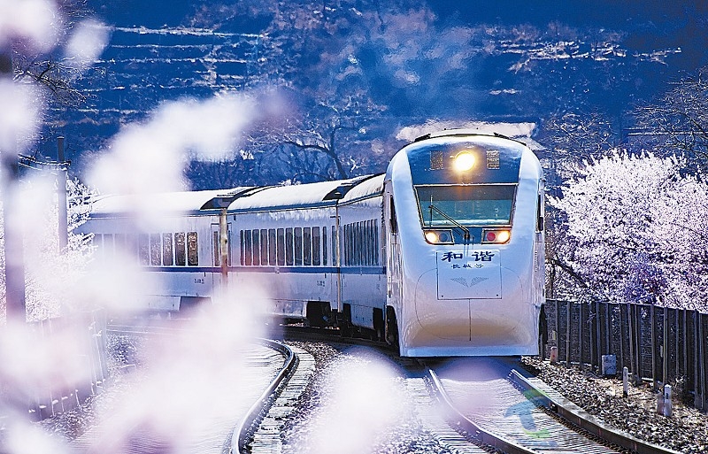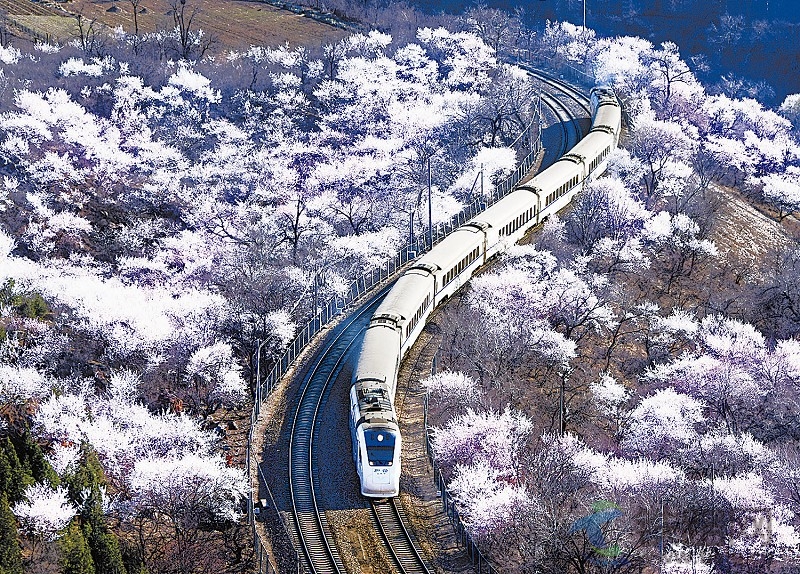 今年,偏高的氣溫讓北京提前入春,居庸關下,成片的山杏花與山桃花也提前綻放在了鐵道線兩側。趁著好天氣,3月25日,筆者再賞春日里的居庸關花海,并再次捕捉了春日里的鐵道風情 (圖①、圖②)。