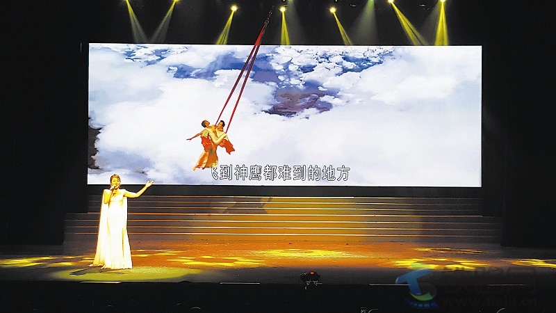 7月6日19點(diǎn)整,垂在舞臺(tái)上的紅幕徐徐拉開(kāi),廣袤的高原、冷峻的雪山、飛馳的列車(chē)……伴隨著LED顯示屏上不斷閃現(xiàn)的青藏高原絕美風(fēng)景,演員們用靈動(dòng)的肢體語(yǔ)言,為觀眾勾勒出一幅洋溢濃郁高原民族特色的畫(huà)面。
