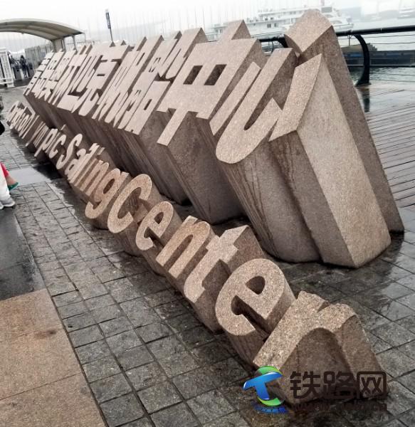 隨著鏡頭的推進(jìn),看到碩大標(biāo)語牌——熱烈慶祝中國人民解放軍海軍建軍70周年,也看到了左右兩邊的國際會議中心和奧運五環(huán)等建筑。當(dāng)走近青島奧帆中心門口時,風(fēng)更大,雨更緊,沒帶雨具的我,只好轉(zhuǎn)身緊回。