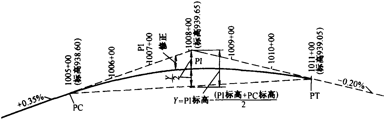 在頂點(diǎn)連接兩個坡度的拋物線形豎曲線