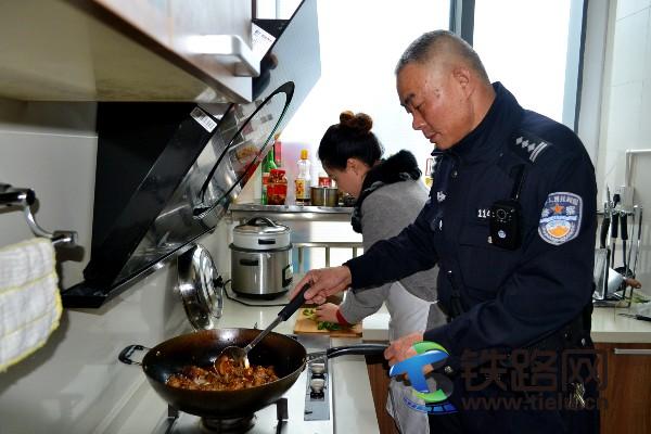 圖5:吳燕與列車運(yùn)行間隙休息的丈夫?yàn)榫瘎?wù)區(qū)值班民警、保安準(zhǔn)備美味豐盛的午餐。