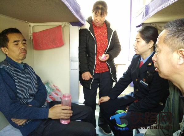 2016年3月6日,列車像以往一樣在鋼軌上飛馳著,突然對講機的急切匯報打斷了這份寧靜。“白車,白車,15號車廂有名旅客昏倒了,請通知廣播找醫(yī)生!毙〗M長何文玉著急地匯報著。列車長白莉云已最快的速度趕到了15號車廂探望生病旅客,并詢問旅客的情況,何文玉進行了簡單的匯報。這名旅客在18號下鋪乘坐,愛人在18號中鋪,從烏魯木齊乘車,目的地是長沙,據(jù)同行人說上車后因為身體不適一直都未進食,早晨上完衛(wèi)生間后就突然感覺到暈眩。白車長在詳細了解完之后,吩咐何文玉給旅客端來了白糖水,這名旅客在喝完后沒過一會兒臉色便恢復了紅潤。原來旅客因為長時間沒有進食,而出現(xiàn)了低血糖。之后的一天旅程里何文玉不時的訊問著旅客的身體情況,為旅客訂餐,扶旅客上廁所,陪他們嘮嘮家常,最終平安地將旅客送到了目的地。他們在下車時他愛人激動地說:“妹子,這路上謝謝你了,多虧了有你,有機會來長沙玩,姐姐一定帶你好好轉轉!焙挝挠裎⑿χf:“你們太客氣了,這都是應該做的,也歡迎你們在到新疆來玩!