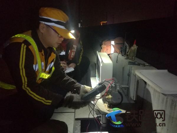 冬季的夜晚室外溫度達到-10℃,明黃色制服上粗大的熒光條在黑夜里格外醒目。連續(xù)作業(yè)三個半小時的史鵬波手腳早已被凍僵,但依舊精神抖擻的帶領(lǐng)著大家抓緊時間進行設(shè)備維護。