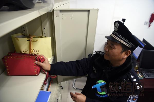 圖片09:徐林濤將無(wú)人認(rèn)領(lǐng)的物品收納到警務(wù)室,細(xì)心看管等旅客來(lái)領(lǐng)齲