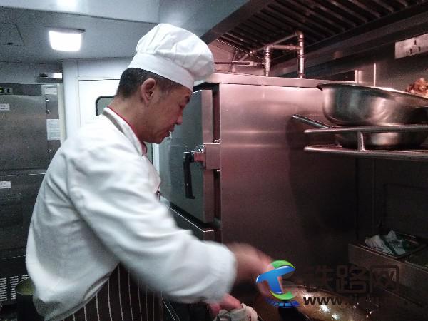 雖然除夕夜車上的旅客不多,但張鳳生還是要從下午三點多就開始準備,在只有幾平方米的狹長廚房里,從事著自己一天的工作。