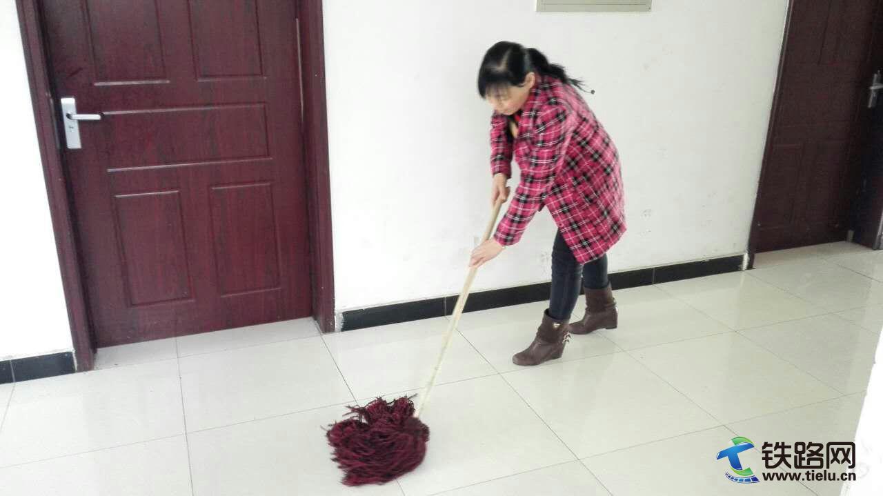 職工生活區(qū)保潔工作賈春芳每天都是從早上6點鐘一直干到11、12點,下班后,丈夫邱文俊不顧身體的疲憊趕緊幫助妻子進行衛(wèi)生打掃。