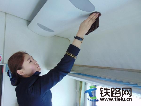 開始的時候,雙班清掃工作每一項都進行的很順利,大家干勁也很足,但是正當我們準備去清掃電暖器縫隙的時候,卻發(fā)現(xiàn)有點兒麻煩,不是很好操作,一是因為電暖器縫隙太小,我們帶著手套的話根本沒法將手伸進去,用筷子進行操作的話,又怕把將里面的線路損壞了,而且不戴手套的話,班組男生占大多數(shù),手指粗很難伸進去,正當我們猶豫的時候,列車長李婧婧果敢地說:“我來吧1話剛說完,她就直接把手伸進去清理,那一刻,我們在場的人都感到十分的敬佩,做為一個女孩子,她總是身先士卒……