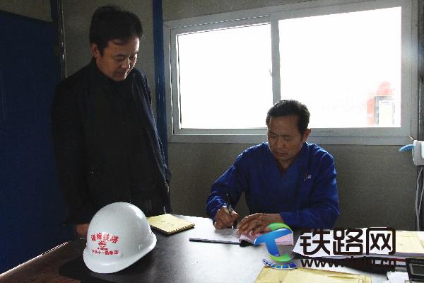 圖1、夏學(xué)金正在給施工隊(duì)材料員下發(fā)料單