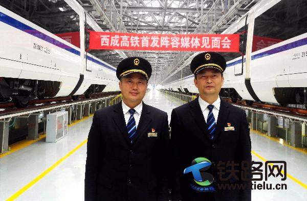 在眾多媒體對(duì)西成高鐵首發(fā)司機(jī)報(bào)道中,幾乎都用了“老司機(jī)”這個(gè)詞來形容。他們倆的“老”不僅體現(xiàn)在有著20多年的的駕齡,安全駕駛里程加起來超過400多萬(wàn)公里,駕駛過內(nèi)燃、電力、動(dòng)車三種不同的機(jī)型,親歷了四川鐵路飛速發(fā)展起來的,還體現(xiàn)在動(dòng)車首發(fā)的資格“老”。杜輝,成都機(jī)務(wù)段首批動(dòng)車司機(jī),參與過成灌、達(dá)成、綿成樂等成都首發(fā)的動(dòng)車開行,被稱為“動(dòng)車首發(fā)專業(yè)戶”;唐建,成都機(jī)務(wù)段第二批動(dòng)車司機(jī),成都鐵路局首批表彰的10名5000趟司機(jī)之一,他們倆都是動(dòng)車司機(jī)中的精英。圖為西成高鐵首發(fā)陣容媒體見面會(huì)首發(fā)司機(jī)杜輝(右)、唐建合影。