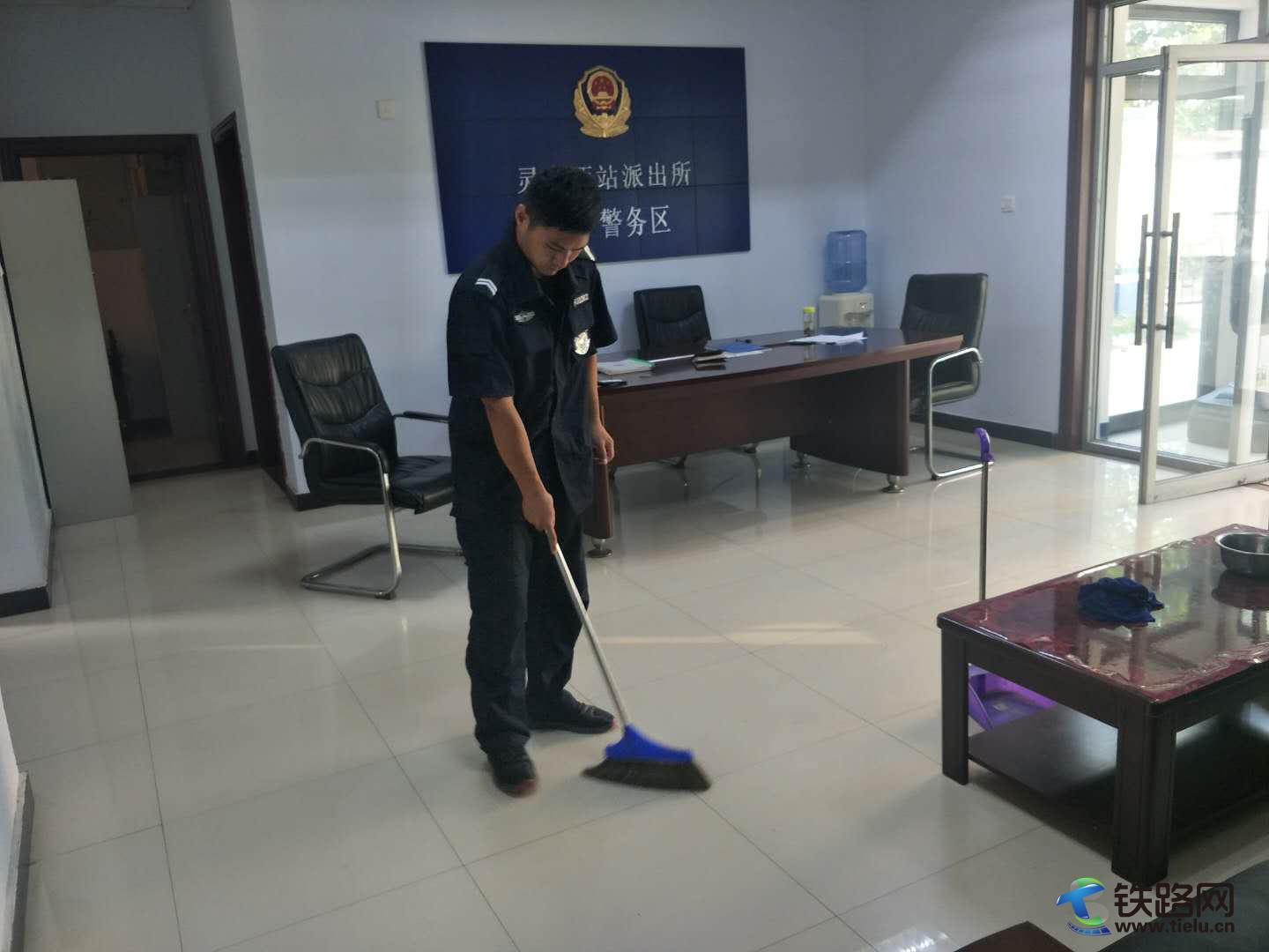 每天早上,隨著樹林里鳥的吵鬧聲,按時起床。高鐵線路迎來的嶄新的一天。 我們作為內(nèi)勤輔警拿著掃把,把警務(wù)區(qū)里里外外的打掃一遍,保持衛(wèi)生整潔,開始了一天的工作。