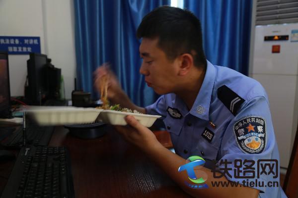 中午時(shí)分,同事打來盒飯,大鵬在執(zhí)勤室抓緊時(shí)間往嘴里扒了兩口,還得回到崗位上。對(duì)于南方的米飯,大鵬說無論吃多少,過兩個(gè)小時(shí)還是會(huì)餓的,晚上下班之后他會(huì)到附近的山西面館里吃一碗面條,填填肚子。